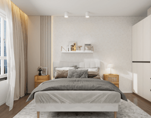 Lighting is also an indispensable part. By using different brightness levels and light source positions, it creates gentle lighting and a suitable living atmosphere, balancing the bedroom’s practicality and comfort. In addition, curtains are particularly important as they not only adjust the light but also provide privacy protection.