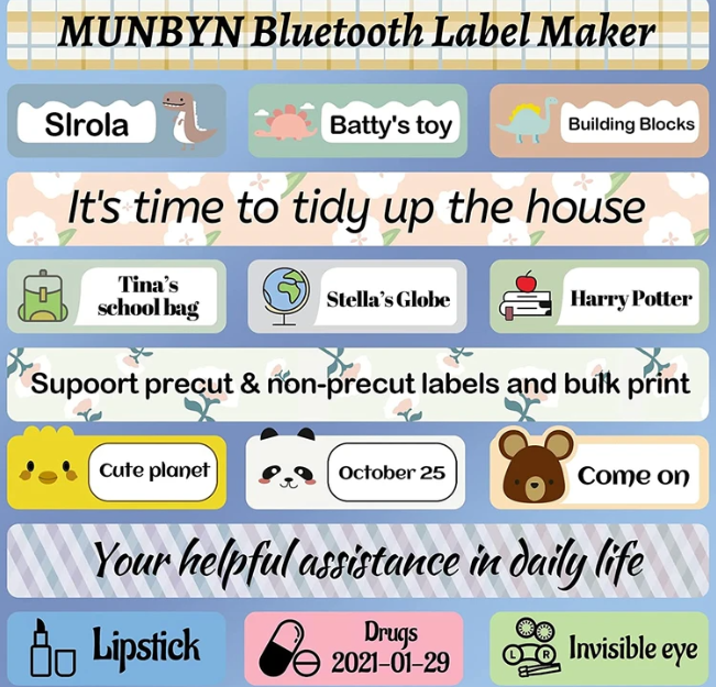 You only need to have a Munbyn bluetooth label maker to fully realize label liberalization design. When you get used to planning and organizing your family life well, you will find how efficient the labeling world is. Can’t find toys thrown by children; can’t find your husband’s tie; forgetting mother’s birthday, forgetting to remind your daughter of important exams, these similar embarrassing moments, Munbyn labeling maker can be saved to a great extent!