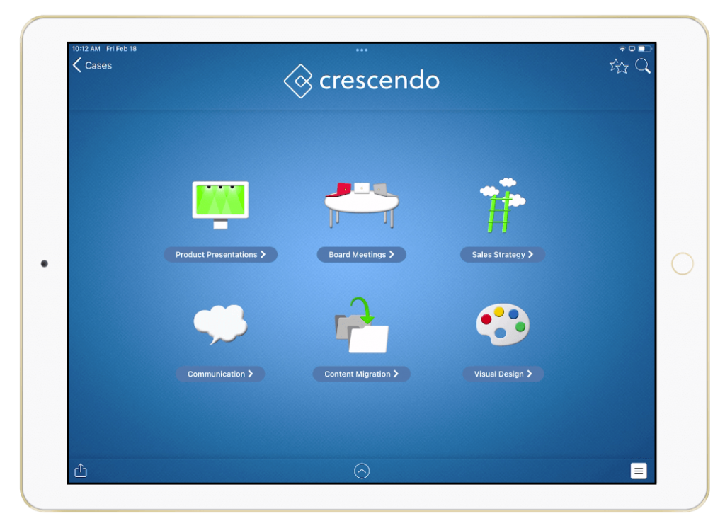 Crescendo tops as a trade show or conference presentation app because users can access content in the cloud storage that your company already use. Simply tag relevant folders and files, and Crescendo will pull them to the device. That way, your content will never require any additional management or migration efforts.