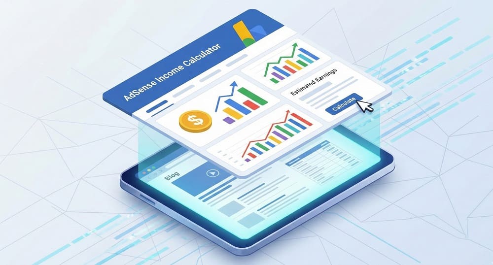 An AdSense income calculator estimates how much you can earn from ads based on traffic and performance metrics.