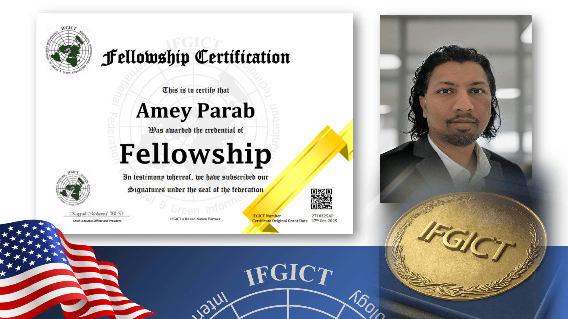 The IFGICT Fellow title is the highest honor bestowed by the International Federation of Global & Green ICT, celebrating individuals who have made truly exceptional contributions to the field of ICT. The organization recognized Amey Parab with the Fellowship degree for his long-standing track record of technical innovation and leadership in enterprise application development.