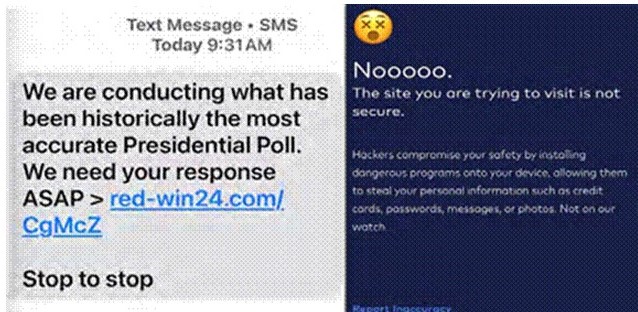 On the second screen, a message from Trump reads, “We are conducting what has been historically the most accurate Presidential Poll. We need your response ASAP.”