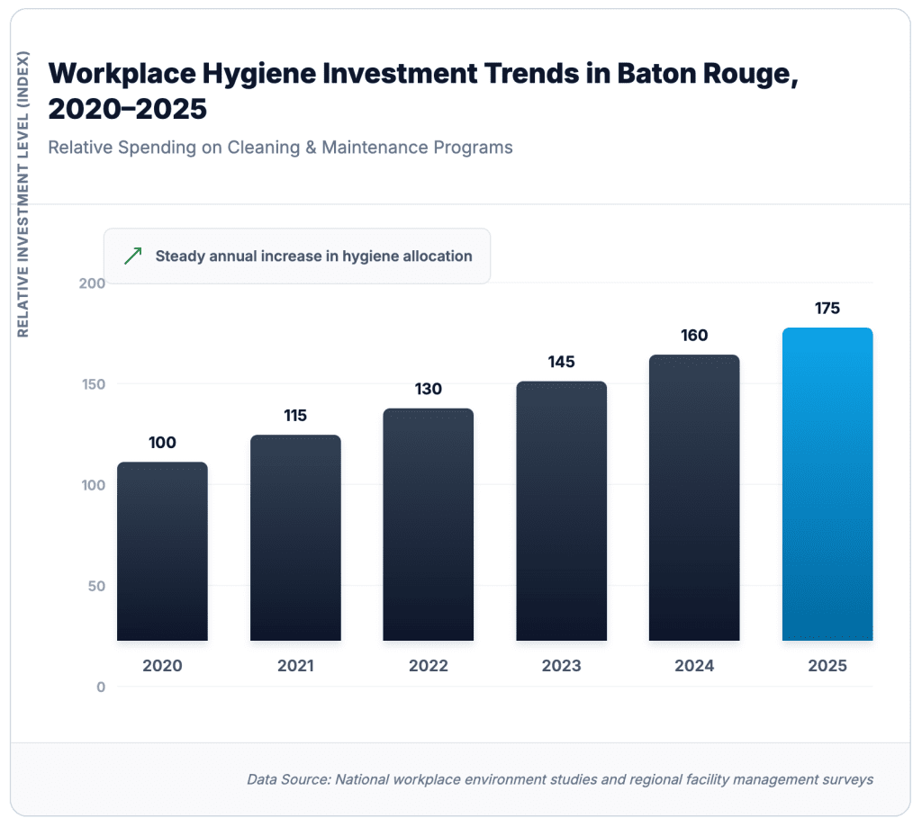 Within Baton Rouge, these trends have become increasingly visible as organizations reevaluate how hygiene standards influence operations, employee perception, and customer experience. Facility managers across multiple sectors report that employees have developed higher expectations for routine cleaning practices, which directly affect their daily work environment.