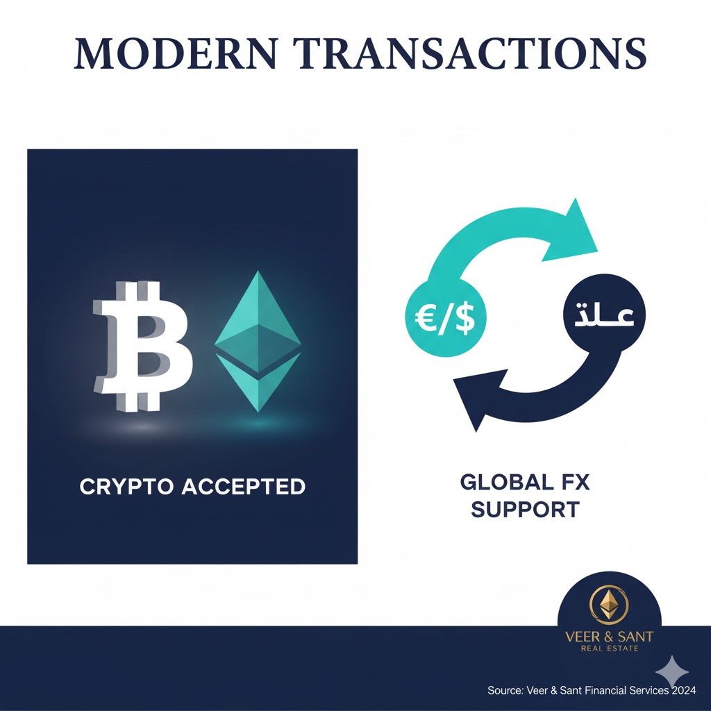Yes, it is entirely safe and increasingly common. Veer & Sant Real Estate facilitates secure and compliant cryptocurrency transactions. We collaborate with reputable financial partners to manage the conversion of digital assets to fiat currency for payment, ensuring that your property purchase adheres to all UAE legal and regulatory requirements, providing you with peace of mind.