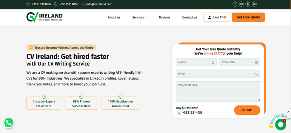 This site is one of the most popular choices in Ireland. It’s run by experienced CV writers who offer top-notch CV services.