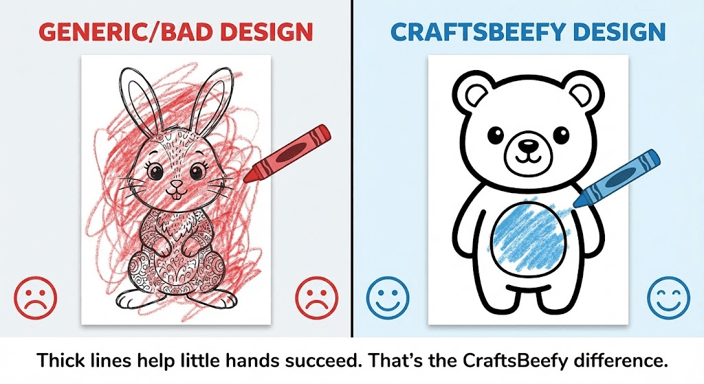 When a toddler or preschooler picks up a crayon, they are still developing their fine motor skills. They cannot color inside tiny, intricate lines. If a coloring page is too detailed, the child gets frustrated and quits.