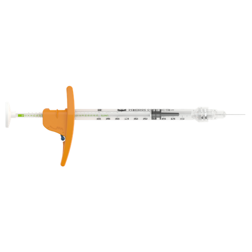 - The orange syringe identifies the dose unit setting with 0.01ml, 0.02ml or 0.04ml for the dilution with 1.0ml, 2.0ml.