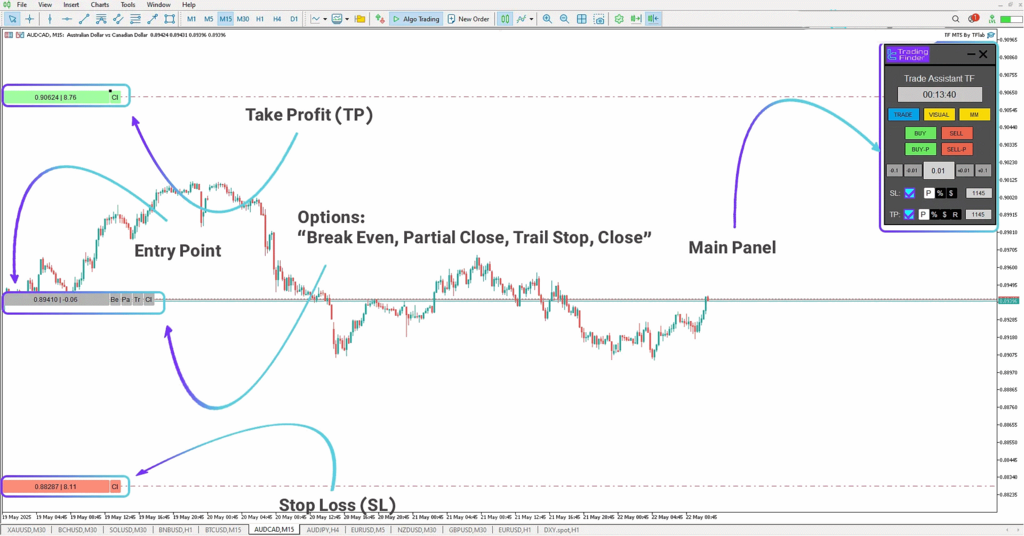 - Break-even modes: Dynamically move stop-loss to the entry point once profit targets are reached, converting positions to risk-free status;