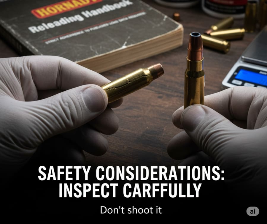 Always inspect reloaded ammunition for cracks, dents, or signs of case fatigue before use. When in doubt, don’t shoot it.