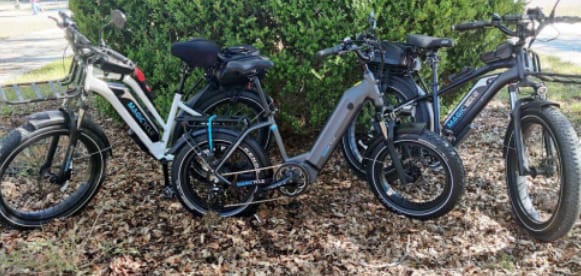 Full assembly is a simple matter of attaching the handlebars, front wheel (rear wheel is already assembled), and seat post. Just follow the instructions in the User Manual and it all happens easily within 30- minutes. I selected the new Space Gray color, and this e-bike is also available in Pearl White or Army Green. Here you see my fully-assembled Space Gray Ocelot Pro surrounded by its “big brothers” — the 26″ Fat Tire ebikes.