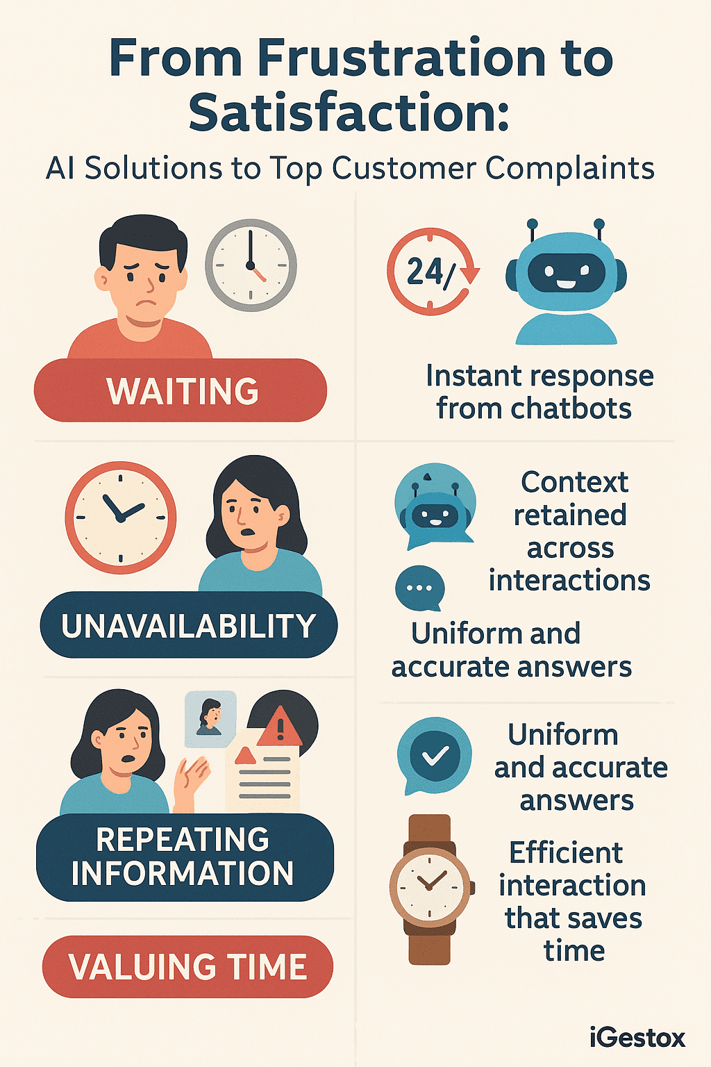 The top customer complaints aren’t mysterious or complex. They’re predictable frustrations with known solutions. AI provides those solutions at scale: