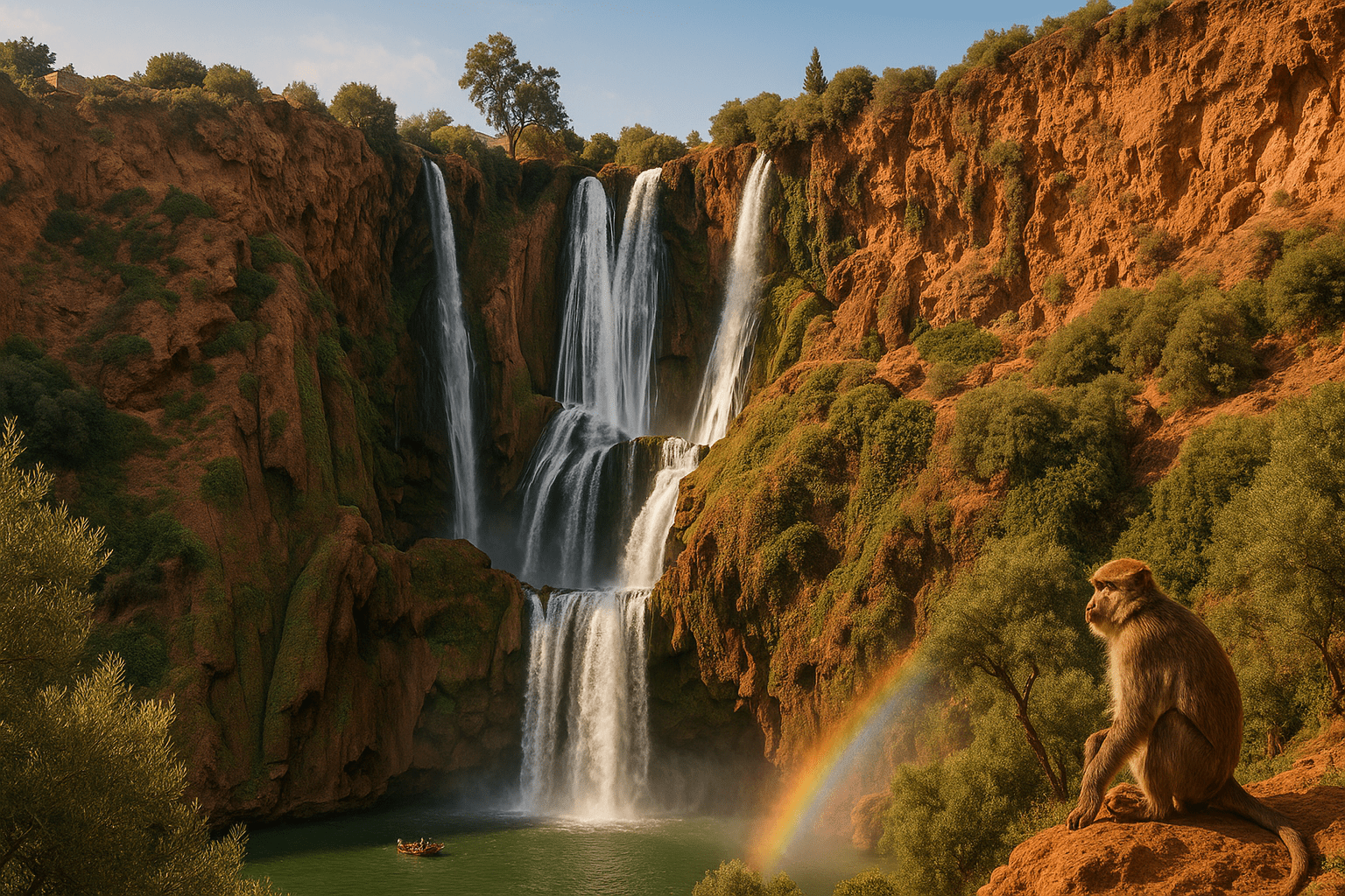 If you’ve got a spare day in Marrakech and you’re craving a splash of nature, Ouzoud Waterfalls is the no-brainer escape. Picture rust-red cliffs, olive groves, rainbow mist, and the distant chatter of Barbary macaques. This guide covers everything you need to go from Marrakech to Ouzoud smoothly how to get there, what it costs, when to go, and exactly how to spend your hours once you arrive.