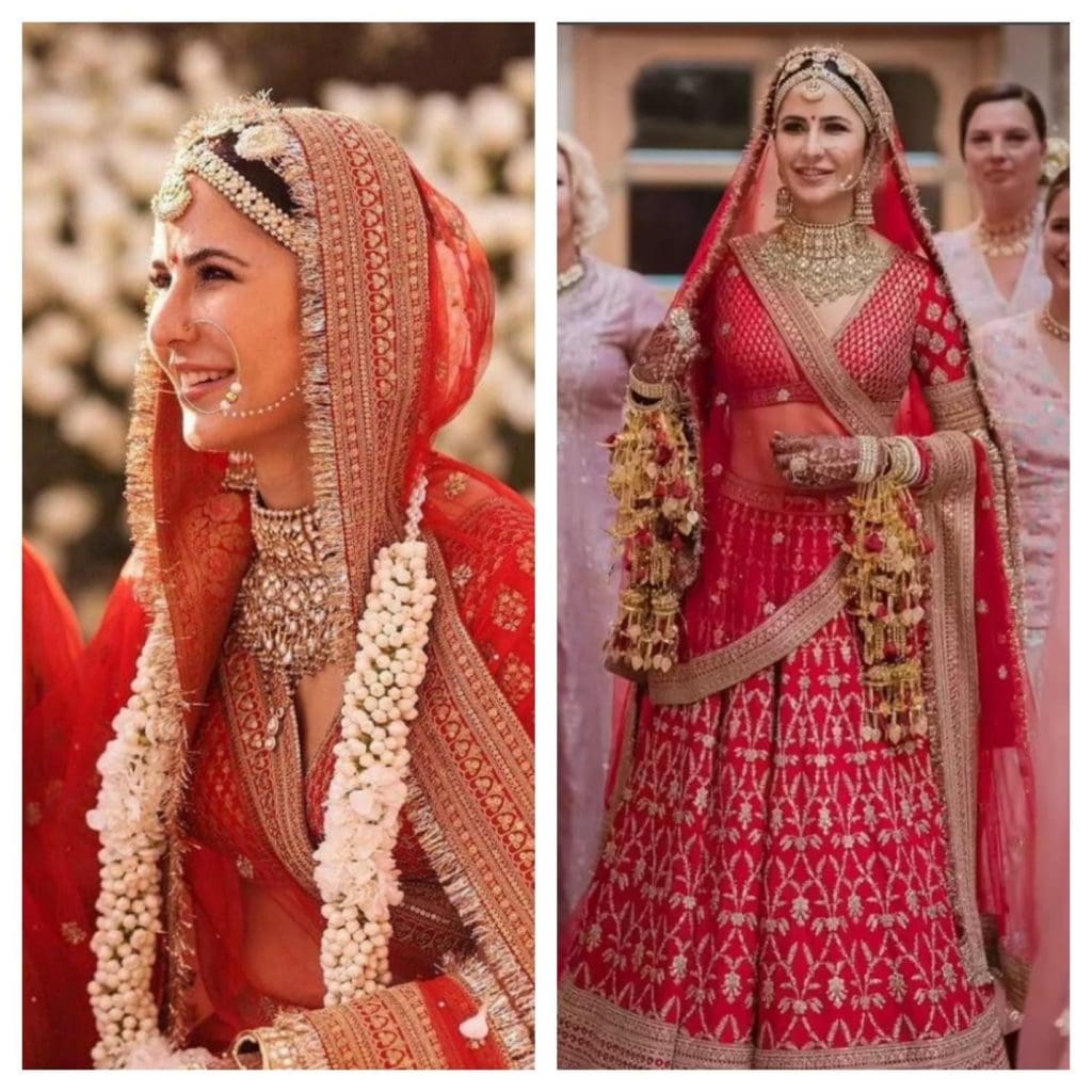 Katrina Kaif’s Sabyasachi red lehenga with handwoven details has inspired this resurgence. To give it your own twist, experiment with double dupattas in contrasting shades or introduce a trendy touch with a halter-neck blouse.