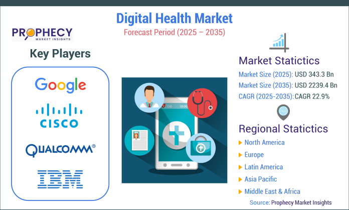The key players operating in the digital health market include, QSI MANAGEMENT, LLC, AT&T, Qualcomm Technologies, Inc., AIRSTRIP TECHNOLOGIES, Google, Inc., and others. Given organizations aim to healthcare accessibility improvement alongside patient outcome enhancement and cost reduction represent shared objectives of digital health organizations which use advanced technological