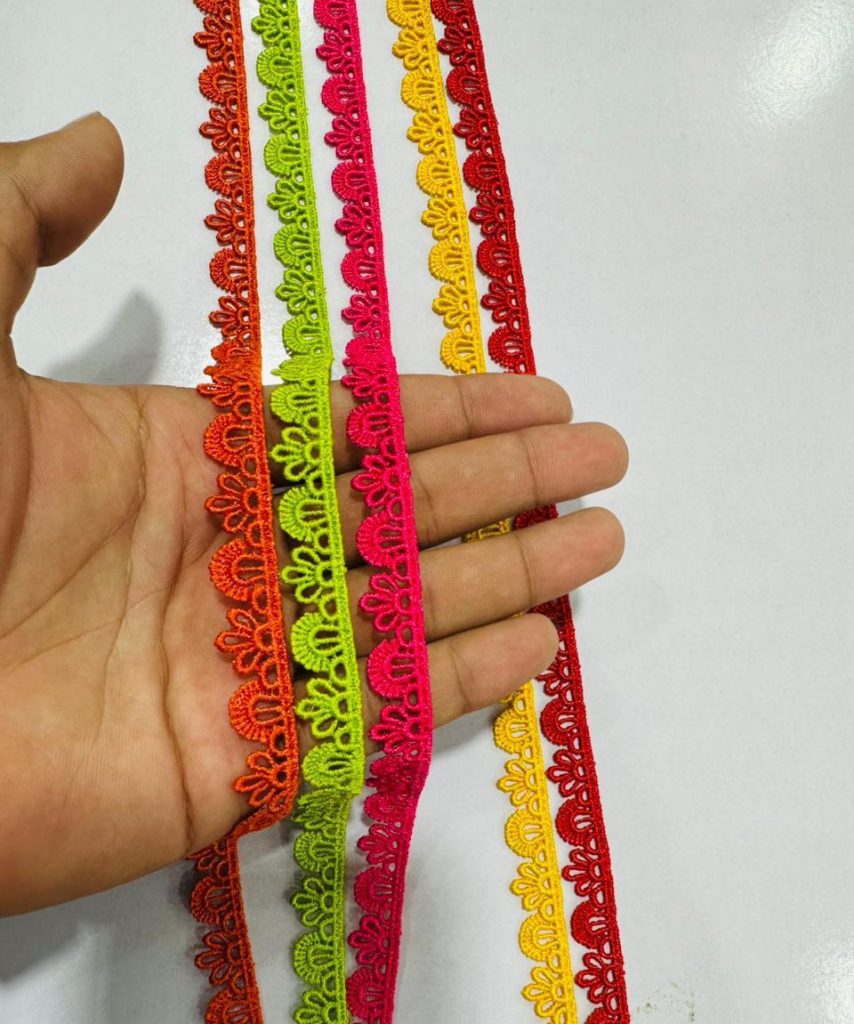 If you want a more substantial look, consider zari or star-studded fancy laces. You can add these to the four edges of a dupatta or the border of your suit to give it a party-wear touch. For a stylish look, you can also combine two different types of lace, such as shuttle lace with a slightly wider fancy lace. This will add depth to the design and make it more attractive. It’s also important to consider color combinations—you can either choose lace that matches the suit’s color or go for a bolder look. By following these tips, you can make the most of your laces and offer your customers the best options.