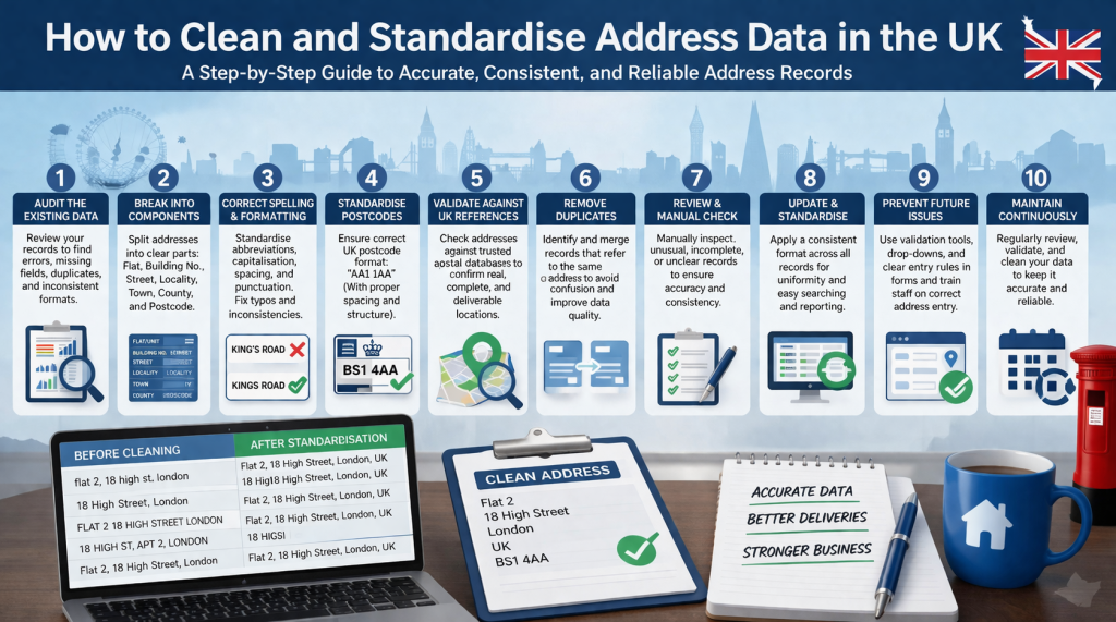 Clean and standardised address data is essential for any business that depends on accurate customer records, reliable deliveries, smooth communication, and strong reporting. In the UK, address information often arrives in many different formats because customers, staff, suppliers, and third-party systems enter data in inconsistent ways. One record may say “Flat 2, 18 High Street, London,” while another may say “18 High St, Apt 2, London.” Even when both refer to the same location, the variation creates confusion. Poor-quality address records can lead to failed deliveries, duplicate customer profiles, inaccurate billing, and weak data analysis. That is why address data cleaning and address standardisation should be a regular part of data management. For organisations working with customer databases, CRM systems, ecommerce platforms, or logistics tools, learning how to clean and standardise address data in the UK is a practical and valuable process that improves efficiency and trust.