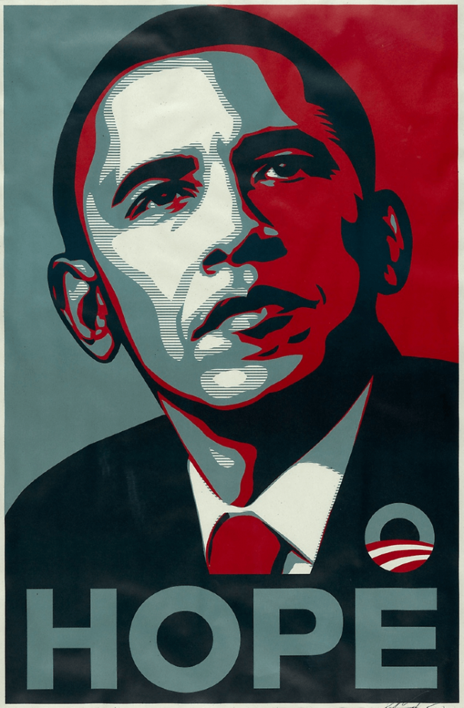 In 2008, a poster, “HOPE,” was designed by artist Shepard Fairy to represent the enthusiasm and energy surrounding the US former president’s campaign.