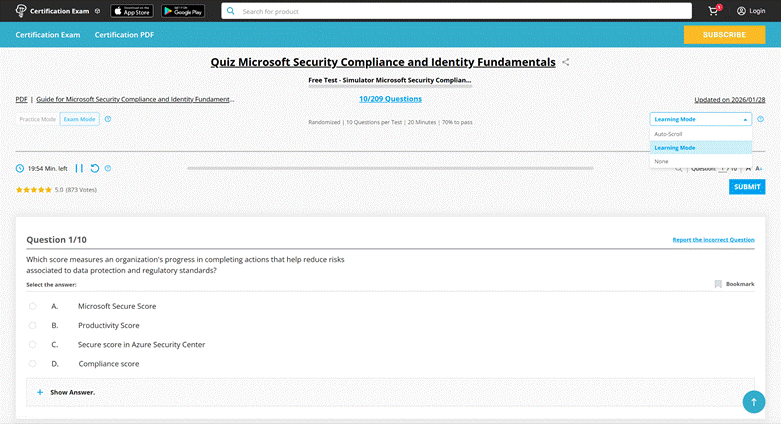 You will see a combination of three types of questions on the SC-900 dumps: multiple-choice questions, drag-and-drop questions, and case studies, whereby multiple questions have to be answered based on one scenario. Ensure you are familiar with how these look and feel when you go into your exam by using the Microsoft Dumps Sandbox to practice beforehand.