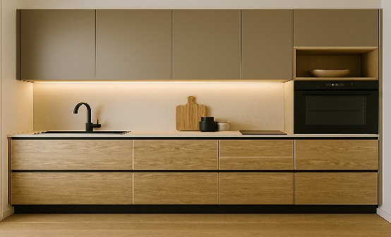 We don’t start with a door sample; we start with your light, your routine, and your space. Then we build a materials story that will still feel right on day 1,000: responsible cores, finishes you can maintain, and details you’ll touch every day. We mock up proportions, bring samples into your home, and install with people who care about the last five millimetres as much as the first drawing. The result: kitchen cabinets that look current in 2025 and still make breakfasts calm in 2030.