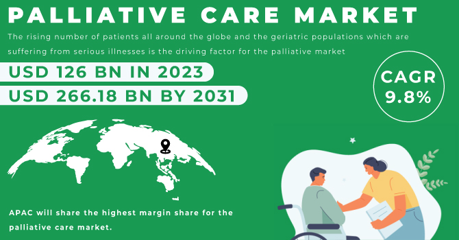 The global palliative care market is on a trajectory of significant growth, with projections indicating an increase from USD 126 Billion in 2023 to USD 266.18 Billion by 2031, at a CAGR of 9.8%. This growth is driven by an aging population, increasing prevalence of chronic diseases, and growing awareness of the benefits of palliative care.