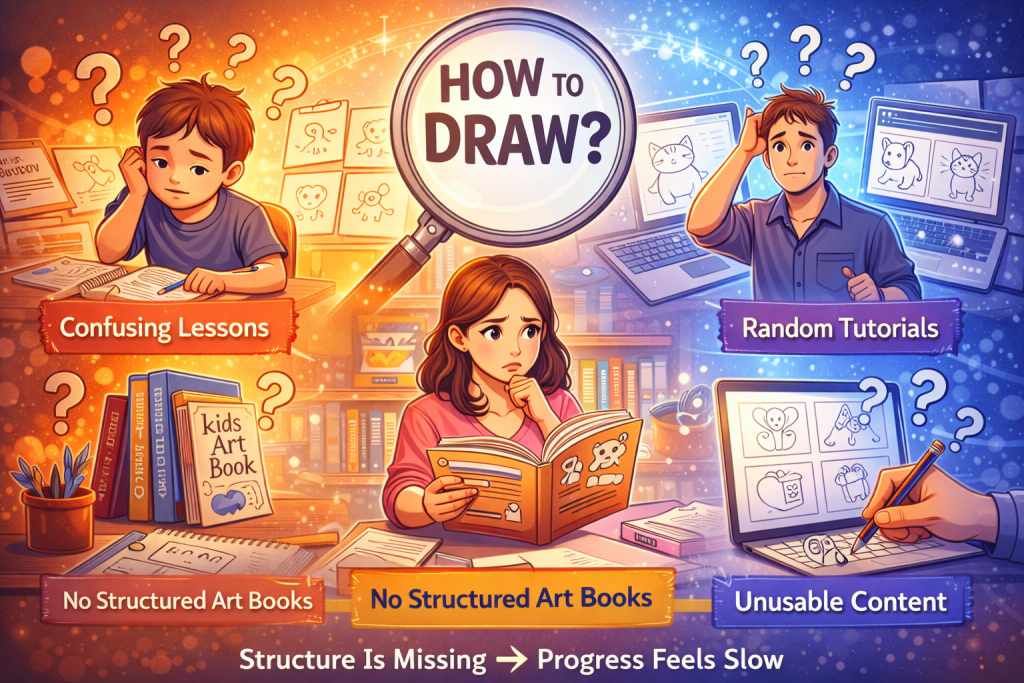 Searching “how to draw” often leads to scattered advice rather than a clear learning path.
