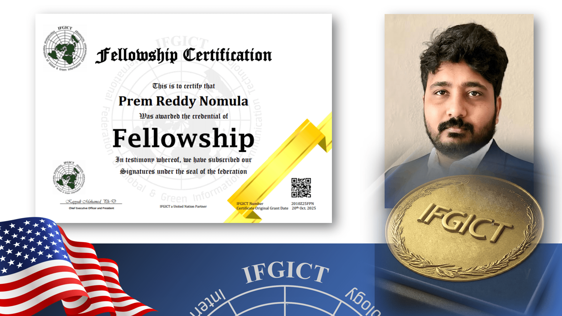The IFGICT Fellowship is a prestigious global recognition from the International Federation of Global & Green Information and Communication Technology, bestowed upon professionals who have made extraordinary contributions to the ICT industry, particularly those promoting modern and sustainable technology use. The granting of the Fellowship degree to Prem Reddy Nomula ifgict underscores his profound impact as a developer and architect.