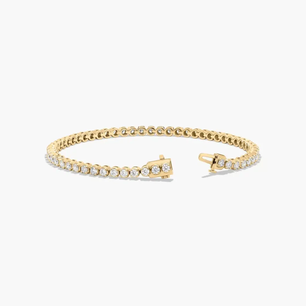 The 3 CTW Tennis Bracelet in 14K Yellow Gold is the quintessential “forever” piece for any jewelry collection, offering a perfect balance of luxury and value within the category of Lab Grown Diamond Tennis Bracelets Under $3000. Priced at $2,795, this bracelet delivers a continuous, shimmering line of light. The use of yellow gold provides a warm, vintage-inspired contrast to the icy brilliance of the colorless diamonds, a look that has remained a fashion staple for decades.