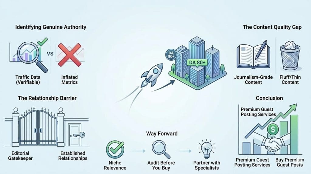 Many marketers attempt to buy premium guest posts based solely on a high Domain Authority (DA) score. However, metrics can be manipulated. The primary issue is distinguishing between a site that has “inflated” numbers and a true high-authority site with real, organic human traffic and a loyal readership.
