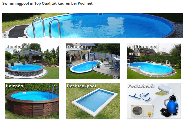 Online-Shops bieten eine breite Palette an Pools in verschiedenen Größen, Formen und Preisklassen.