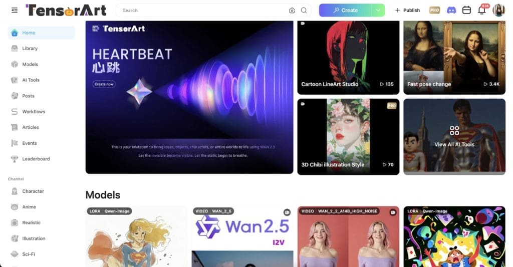 - Model hosting and marketplace support for Checkpoints and LoRA to share, remix, and monetize within an active community.