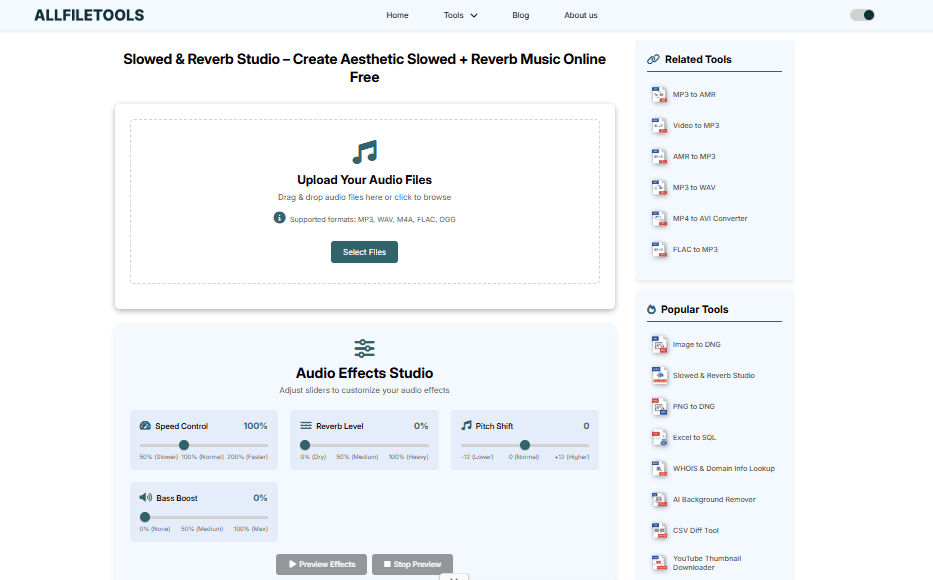 - Step 1: Open the Slowed & Reverb Studio tool on AllFileTools.com.