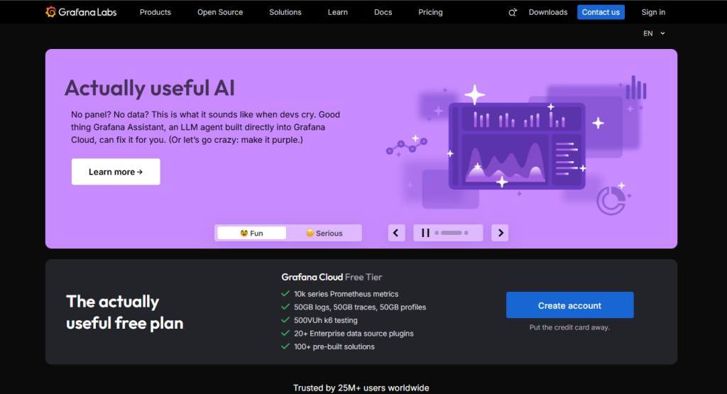 - Grafana Cloud – open-source LGTM stack, managed or self-hosted
