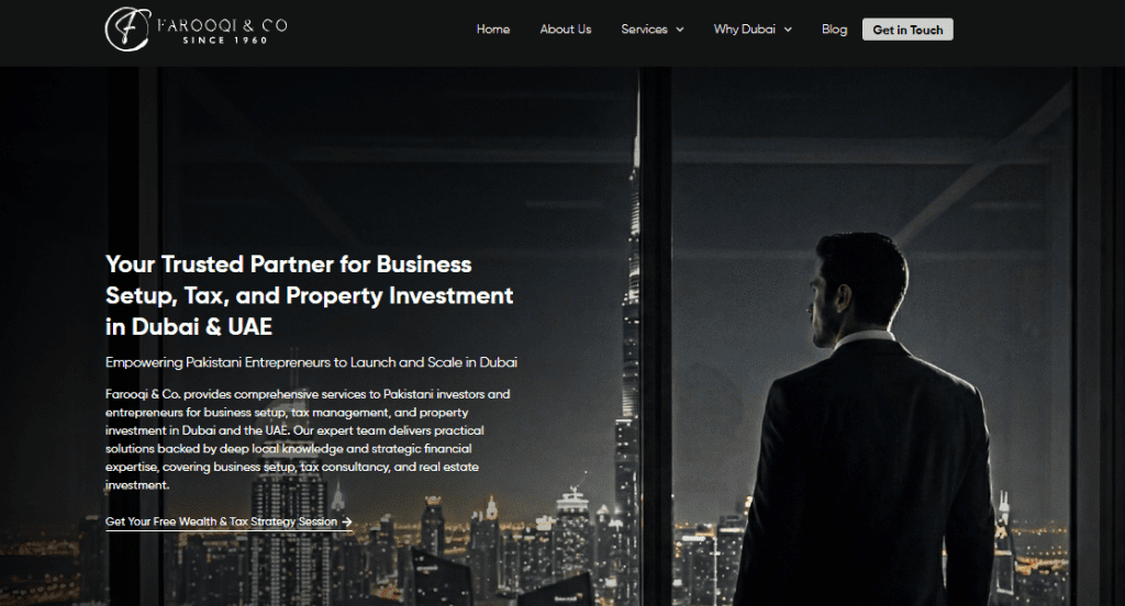 Farooqi & Co is one of the Top 10 business setup consultants in UAE, providing end-to-end solutions, transparent business setup consultants in UAE cost, and personalized packages for Pakistani investors. Their services combine efficiency, affordability, and expert guidance to ensure businesses thrive in the UAE market.