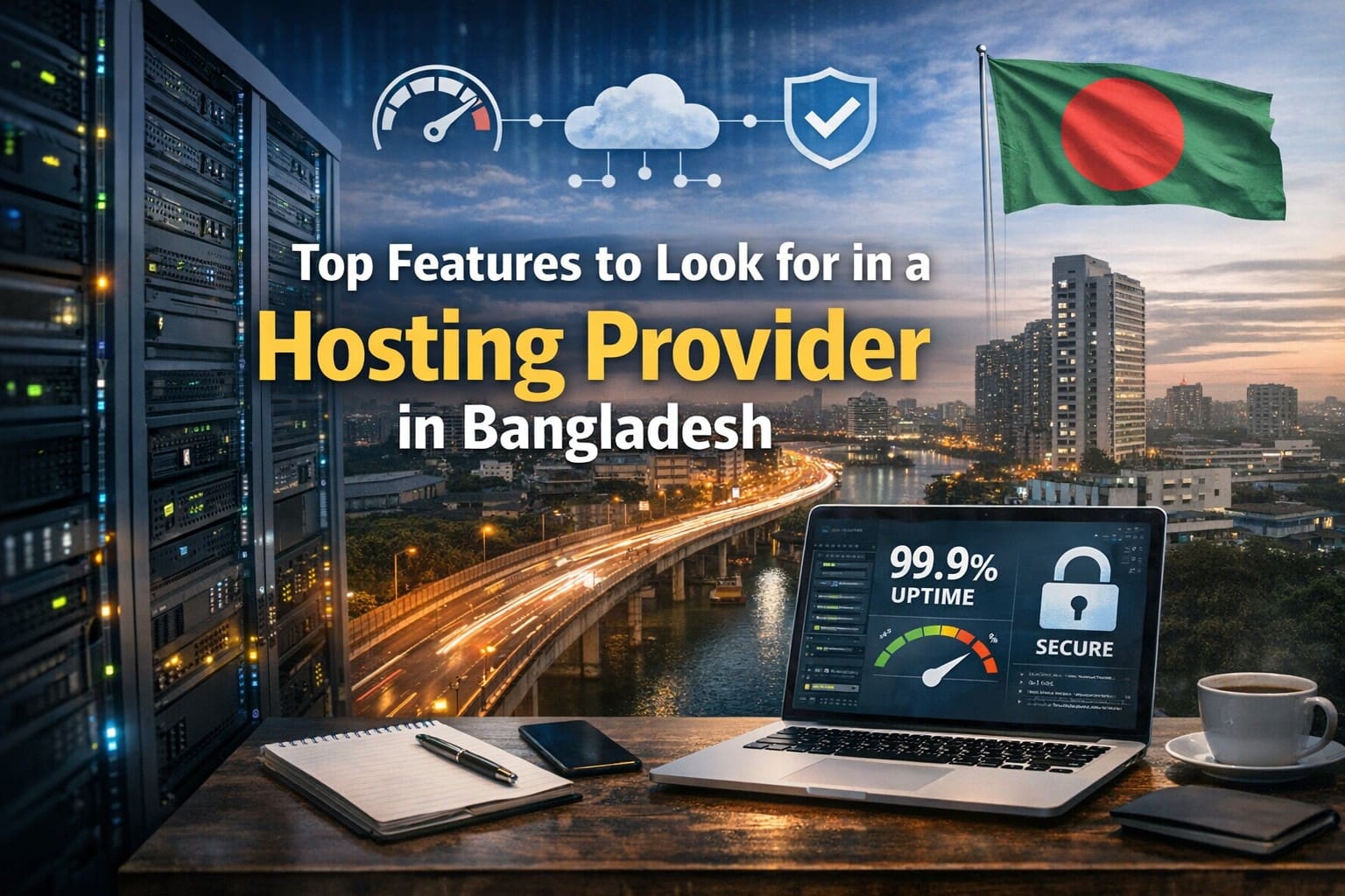 At minimum: 99.9% uptime SLA, SSD storage, free SSL, daily backups, and cPanel. For Bangladesh, add BDIX connectivity and local payment options.