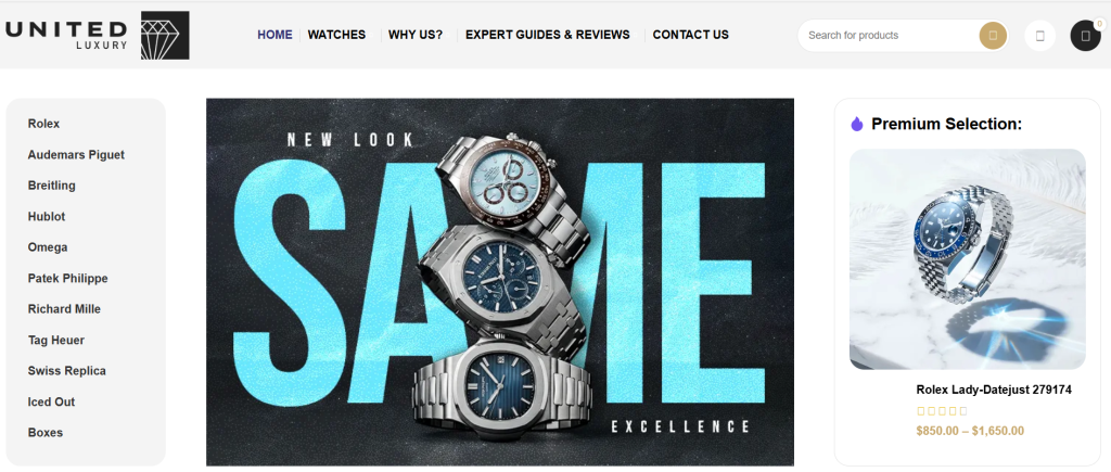 United Luxury positions itself at the premium end of the superclone retail market, offering what they describe as a “near-boutique” buying experience. Their catalog is curated, communication is professional, and they focus on buyers who want the full package — presentation, documentation, and a watch that performs as described.
