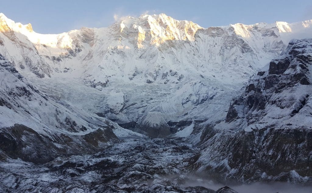 Today’s trail is one of the most rewarding. The path ascends past Hinku Cave and climbs through Deurali before reaching Machhapuchhre Base Camp (3,700 m), where you’ll be treated to magnificent views of Machhapuchhre and surrounding peaks. From here, continue along the glacial moraine into the heart of the Annapurna Sanctuary. Arriving at Annapurna Base Camp (4,130 m) is a breathtaking moment, surrounded by towering peaks like Annapurna I, Annapurna South, Hiunchuli and many more.