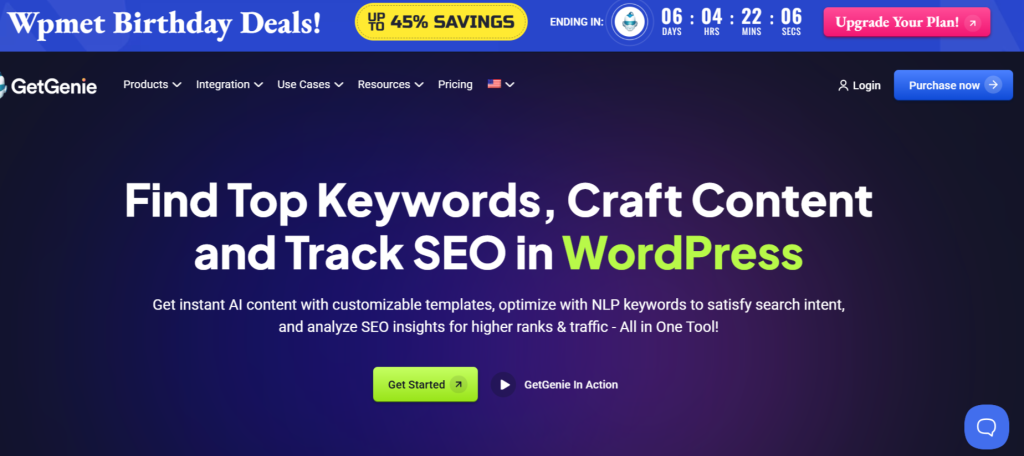 GetGenie AI is not just another content-writing tool — it’s a comprehensive digital assistant designed to tackle your content strategy from research to optimization. Built specifically for WordPress and SaaS users, this tool goes beyond basic AI writing. It brings automated keyword research, real-time competitor analysis, SERP insights, and SEO scoring, all under one roof.