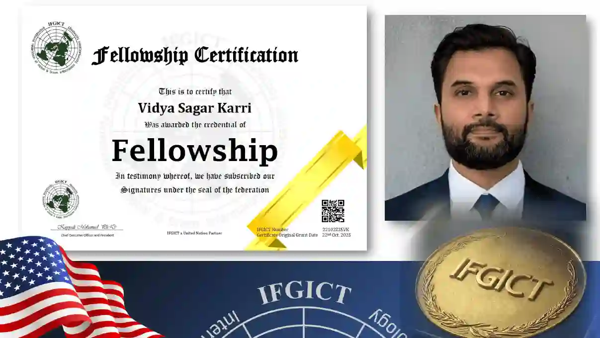 Vidya Sagar Karri, a distinguished technology expert and visionary leader, has officially been granted the IFGICT Fellowship grade. This highest professional honor from the International Federation of Global & Green ICT recognizes Karri’s sustained excellence and significant contributions to the Information and Communication Technology (ICT) sector. Following a rigorous review by the Fellowship Committee and Board of Directors, Karri now joins an exclusive global community of innovators dedicated to advancing sustainable digital growth.