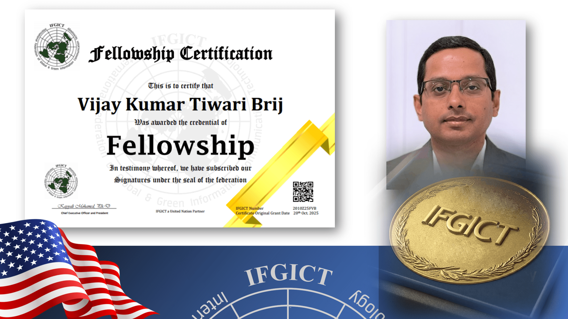 Vijay Kumar Tiwari Brij, a distinguished leader and innovator in the realm of Information and Communication Technology (ICT), has been honored with the IFGICT Fellowship grade. This highest distinction, conferred by the International Federation of Global & Green ICT, recognizes individuals who have made significant, lasting contributions to the global ICT industry, particularly those promoting sustainable and ethical technology development. Tiwari Brij’s work, spanning decades of dedication, positions him as a key thought leader and enterprise architect whose expertise shapes the future of digital ecosystems and global best practices in technology governance.