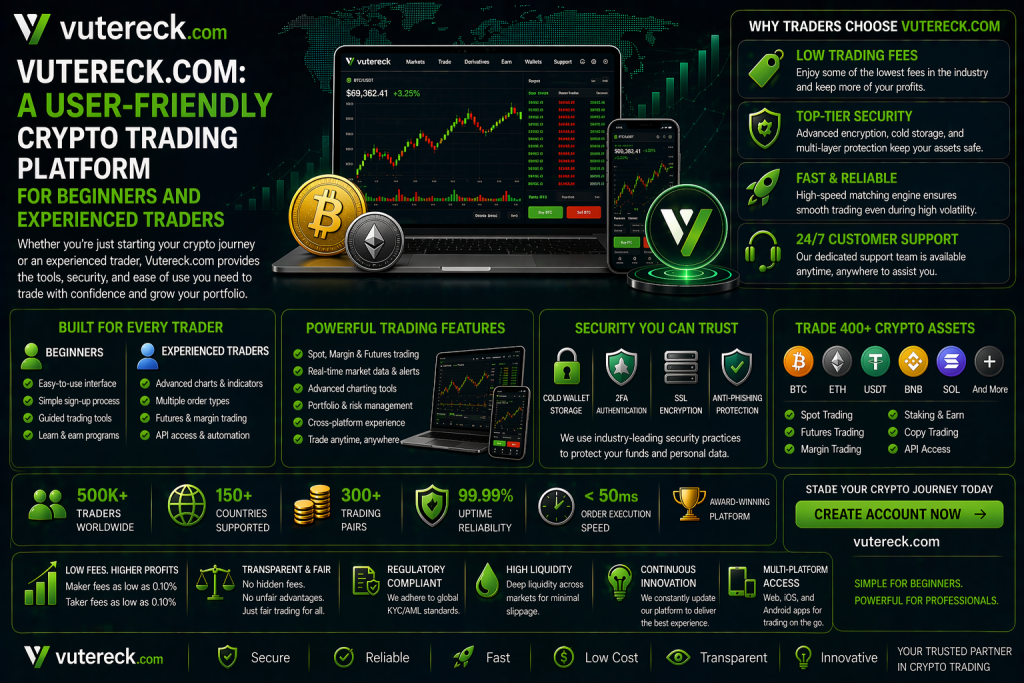 In this environment, vutereck.com is positioning itself as a user-friendly crypto trading platform designed to support traders at all levels. By focusing on accessibility, performance, and ease of use, it aims to create a balanced and practical trading experience.