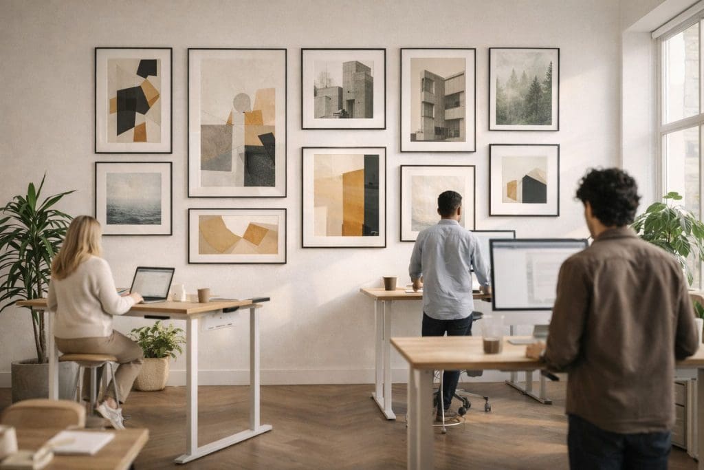 The shift to hybrid and remote work has created a specific new context for wall art that wasn’t relevant in the pre-pandemic workplace landscape. The space behind you in a video call is now, effectively, a professional environment visible to colleagues, clients, and employers.