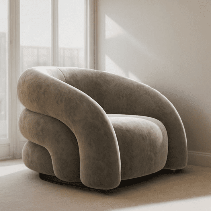 This design creates a cozy seating area that gently surrounds the user, offering both comfort and support. The curved backrest and arms form a continuous upholstered surface, making the chair feel more enclosed and relaxing compared to standard armchairs.