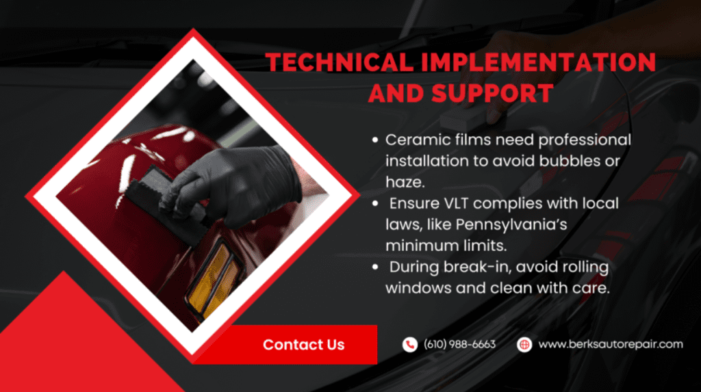 Ceramic films require professional installation to prevent the appearance of bubbles, haze and positioning errors.
