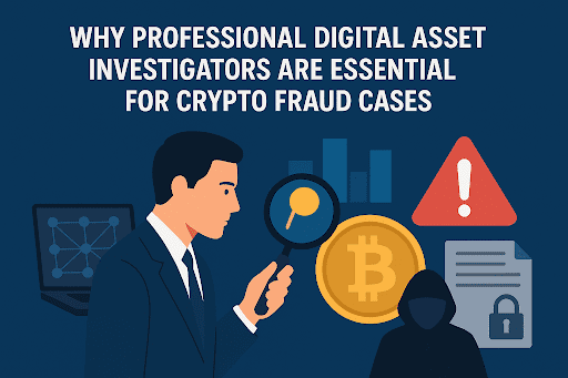 As cryptocurrencies become mainstream, so does the need for specialised crypto fraud investigation services. Professional digital asset investigators combine advanced blockchain analytics, digital asset tracing, and cross-border legal collaboration to give victims their best chance at justice and potential recovery. For anyone affected by crypto scams, relying on trained crypto recovery experts is the most effective way to navigate the path forward.
