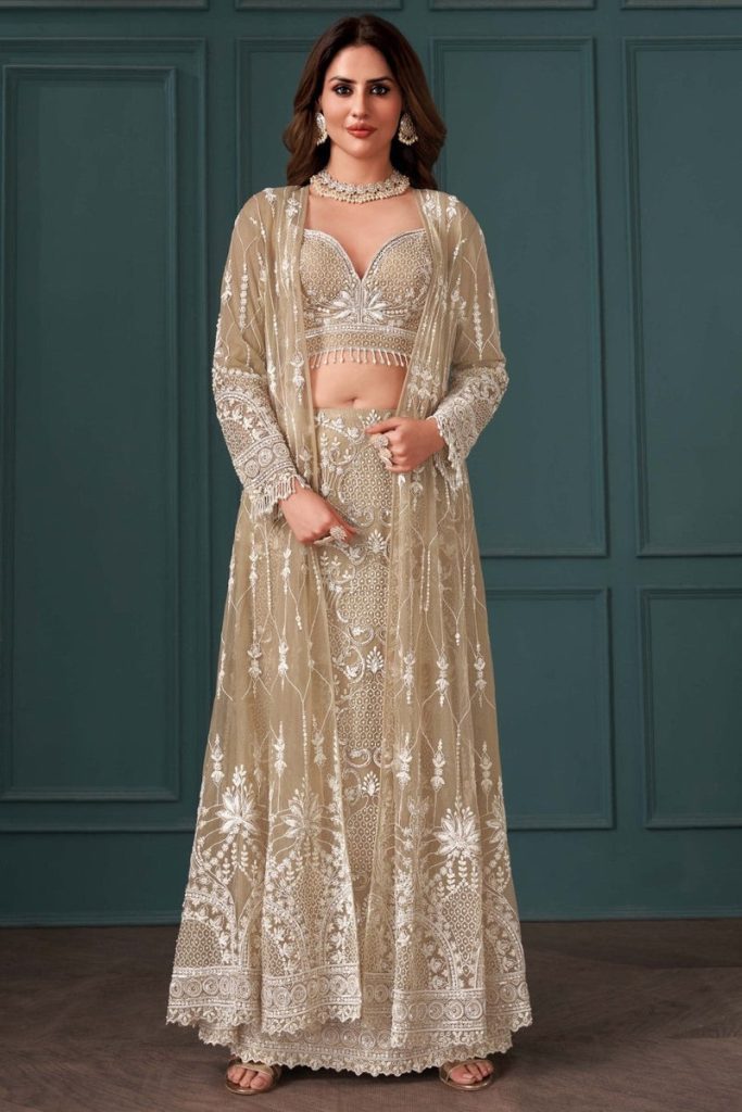 Fabrics like net, satin, velvet, and shimmer georgette are often used to bring a rich, glamorous texture to these outfits. Depending on your personal style, you can go minimal with soft pastels and mirror work or all-out bold with deep jewel tones and metallic accents.
